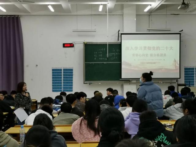 11月29日,辅导员熊璐从党的二十大主题入手,以《永远跟党走,奋进新征程》为题,重点围绕“共青团的使命和性质”“党的二十大的解读”“新时代青年的新使命”“青年建功新时代”等方面为PA视讯平台团员青年们更加深刻理解、准确把握党的二十大精神的核心要义和丰富内涵作了具体宣传阐释,此次宣讲气氛活跃,使得同学们对于党的二十大精神有了更加深刻的理解。