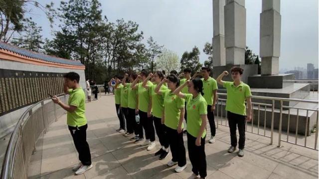 在捡拾完垃圾之后,公司学子在仰天岗纪念碑前进行了入团宣誓。丰碑永铸思英烈,浩气长存祭忠魂。在青松翠柏掩映下,仰天岗革命烈士纪念碑显得格外庄严肃穆。追思英烈的丰功伟绩,怀着崇敬的心情宣誓,表达深切的缅怀之情。
