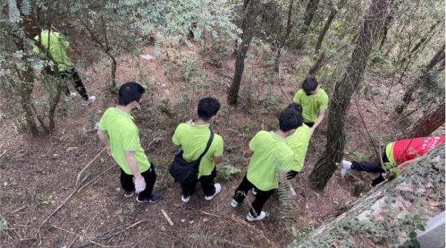 来到仰天岗,便被壮观的景色所吸引。尽管天气炎热,但丝毫没有降低志愿者们的干劲。为了树立大家“保护环境,从我做起”的环保意识,志愿者们从小事做起,一双手套、一个垃圾袋就是大家的“拾荒”工具。