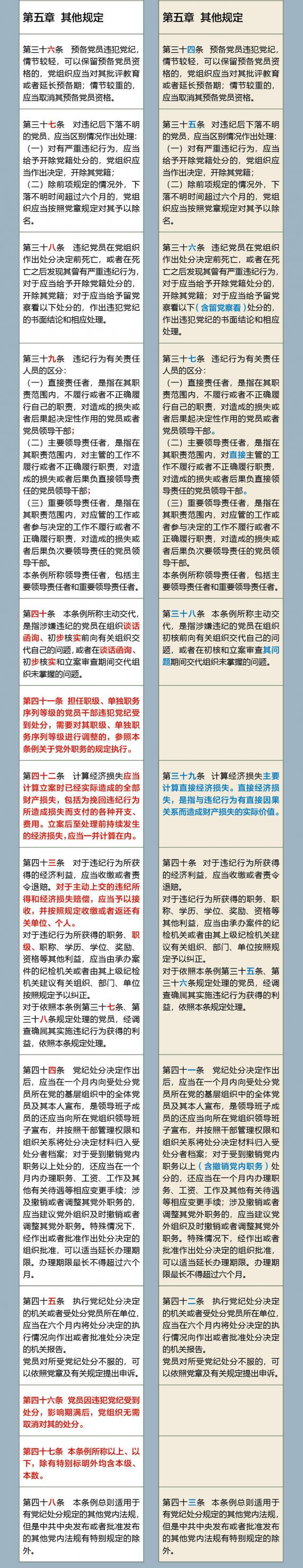 《中国共产党纪律处分条例》修订前后对照表