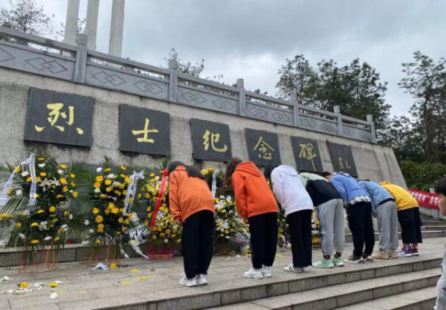 宣誓后师生拾级而上,在墓碑前鞠躬默哀,深切缅怀革命烈士。