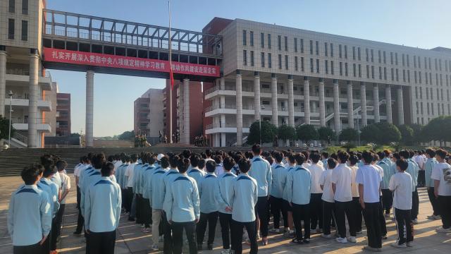 师生们精神饱满,满怀期待。校国旗护卫队的队员们迈着整齐有力的步伐,护卫着国旗走向升旗台。国歌奏响,升旗手振臂一挥,五星红旗缓缓上升。全体师生庄重地凝视国旗,齐声高唱国歌。这一刻,大家心中满是对祖国的热爱,青春朝气与家国情怀相融,每个人都感受到了沉甸甸的责任与使命。