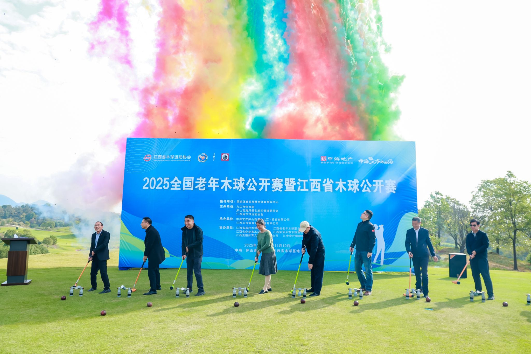 本次活动由国家体育总局社会体育指导中心指导,江西省木球运动协会、九江市体育局、庐山西海风景区管理委员会联合主办,全国各省区市共29支队伍,300余人参赛。赛事设置“全国老年赛”与“江西公开赛”两大组别,涵盖杆数赛(男/女团体、个人、双人)与球道赛(男/女个人)等多个项目。参赛运动员们将在为期3天的比赛中决出胜负。此次比赛不仅是一场高水平的体育竞技,更是推动木球文化传播、促进全民健身与文旅融合的重要平台。