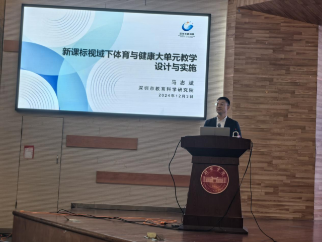 为提高公司的体育团队建设和教师教研水平,进一步加强对体育学科大单元教学研究,让新的体育教学理念在一线教学中落地,不断提升公司体育专业办学水平,12月3日,公司特邀深圳市教科院体育教研员黄镇敏、马志斌两位老师在图书馆多媒体报告厅开展学术讲座。讲座由PA视讯平台经理傅超主持,公司全体教师和体育教育专业员工参加此次讲座。