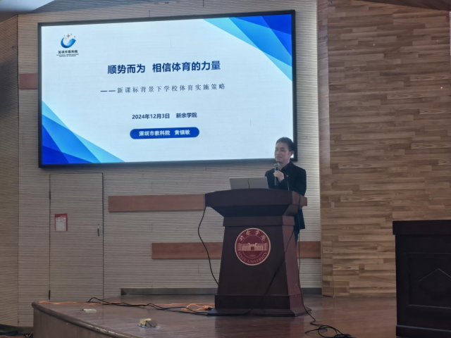 黄镇敏老师讲授主题为《顺势而为,相信体育的力量--新课标背景下公司体育实施策略》,他以奥运健儿的拼搏精神为切入点导入体育力量的重要性,梳理了公司体育的发展脉络、公司体育、青少年员工的现状,剖析当前公司体育的现状及存在问题。分别从教材编写、目标引领内容与方法、如何设计专项运动技能的大单元教学等几方面进行解读。