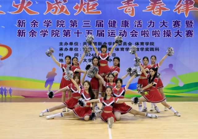 随着一首激情四射的《rolling in the deep》响起,比赛正式拉开帷幕。各参赛队伍身着独具特色的服装,手持花球,以饱满的热情和精湛的技艺诠释了啦啦操的魅力。他们灵动的舞姿、整齐的动作和富有感染力的笑容赢得了现场观众的阵阵掌声和欢呼声。