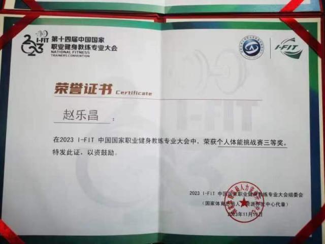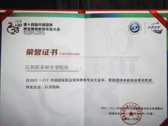 11月16日-19日,由国家体育总局人力资源开发中心、职业技能鉴定指导中心主办的2023 I-FIT中国国家职业健身教练专业大会在北京工业大学体育馆隆重举办。公司师生在本次比赛中获得个人技能挑战赛三等奖,团体体能挑战赛优胜奖的好成绩。