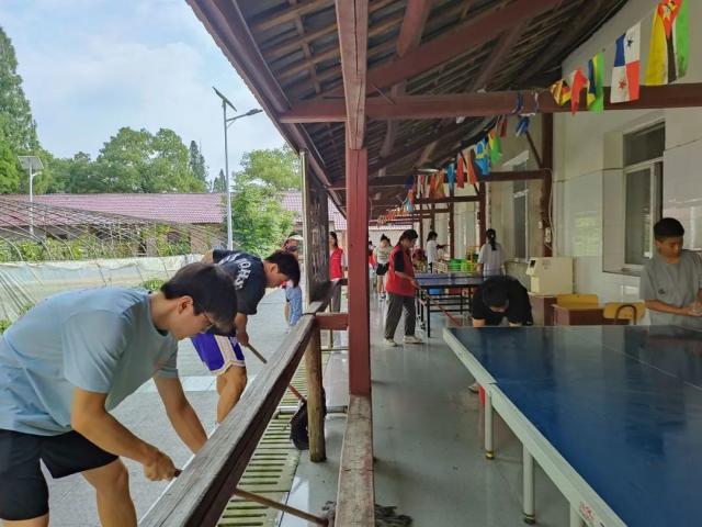 清晨吃完早饭,在德仁苑的院子里,可以看到志愿者与小朋友们一起打扫卫生。美好的一天从清扫院子开始,大家一起清理落叶,擦窗台,拖地等。不一会儿,原本满是灰尘的走廊和院子打扫的窗明几净了。孩子们的脸上也洋溢出了治愈的笑容。