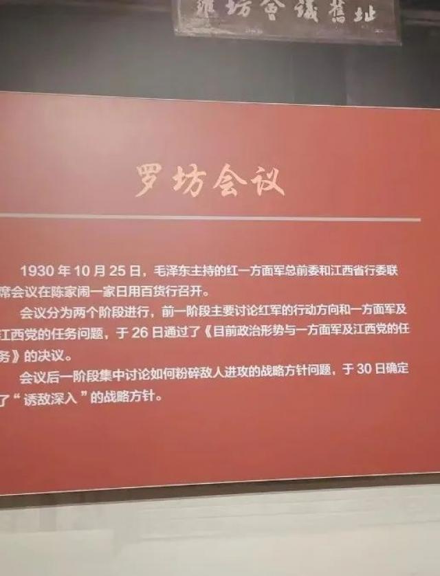 罗坊会议是1930年10月,毛泽东同志在新余罗坊主持召开的一次会议, 我们先后参观了罗坊会议、兴国调查陈列馆等,并观看了陈列在馆中当年使用过的战争用品及复制品,近距离感受罗坊会议1日址1日貌。通过观看文字、图片、资料,重温革命历史缅怀革命先烈,大家对罗坊会议、兴国调查等重大历史事件有了更加深入的了解,虽然这次的实践活动很短,但我们对于历史上的重大历史事件又 有了一个深刻的了解。红色故事简单易懂,红色精神深入人心。我们要铭记历史,向革命前辈学习红色精神。