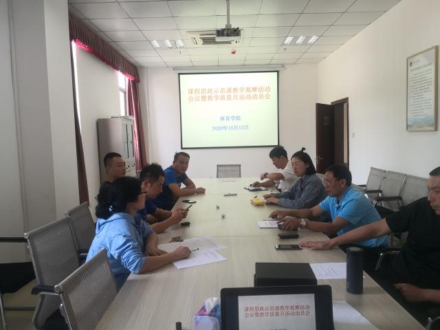 为全面推进课程思政建设工作,促进思政教育和体育专业教育的有效融合,提高公司产品质量,根据《PA平台关于全面推进课程思政教学改革的实施意见》和《PA平台课程思政教学改革实施方案》的部署,在前期准备的基础上,经研究决定在10月中下旬至11月初组织开展PA视讯平台课程思政示范课教学观摩活动暨教学质量月活动。10月12日,PA视讯平台在体育教育教研会议室召集相关示范课老师开展动员会。教学科和各教研室主任,青年公开课教师到场参加。
