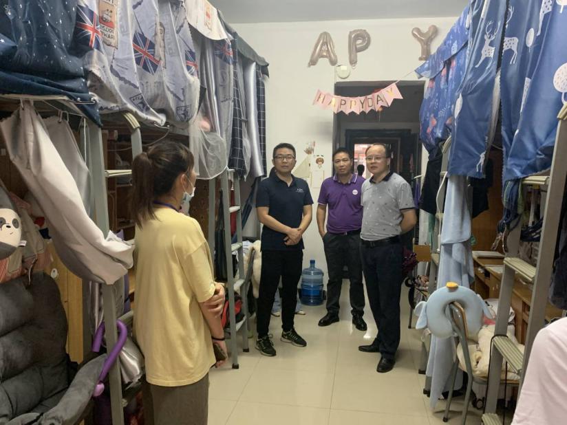 徐董事长走访了5栋部分员工宿舍,在走访过程中,徐董事长与同学们亲切交谈,深入了解他们的学习和生活情况,尤其是日常生活中遇到的困难和困惑,并鼓励同学们合理安排时间,掌握不同学科的学习技巧。他仔细询问了同学们的专业方向,对就业方向的目标定位,勉励同学们一定要确定发展方向,夯实专业基础,提升综合素质。同时他对宿舍的整洁环境给予表扬,鼓励大家要继续保持寝室卫生,叮嘱同学们要提高自我防范意识,营造一个安全、健康、舒适的学习和生活环境。