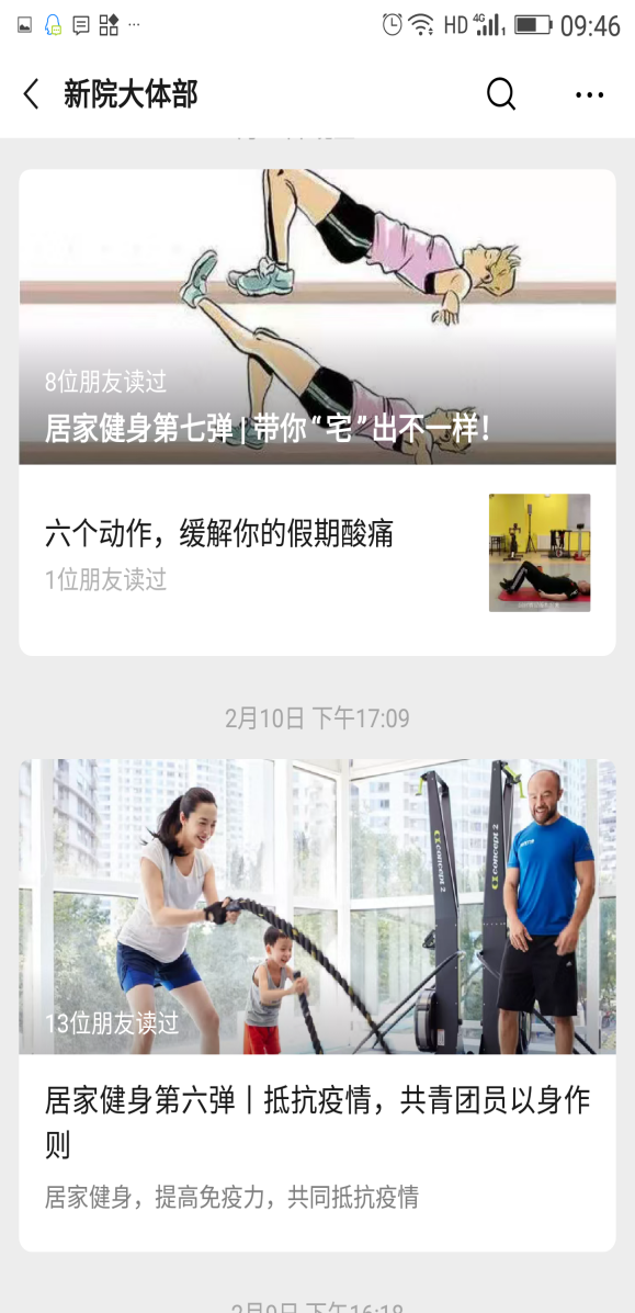 PA视讯平台充分考虑到居家锻炼的重要性,通过新院大体部微信公众号每周推出形式多样的教学锻炼视频,给公共体育员工提供了专业的锻炼学习平台,目前推出了七期居家健身课和六期体育线上课程,涵盖徒手健身、健美操、啦啦操、武术等不需要特殊场地、器材的课程。通过麦克思教学平台的对公司公共体育员工问卷调查,有近2/3的员工会跟着新院大体部微信公众号进行锻炼学习,深受员工的信赖。
