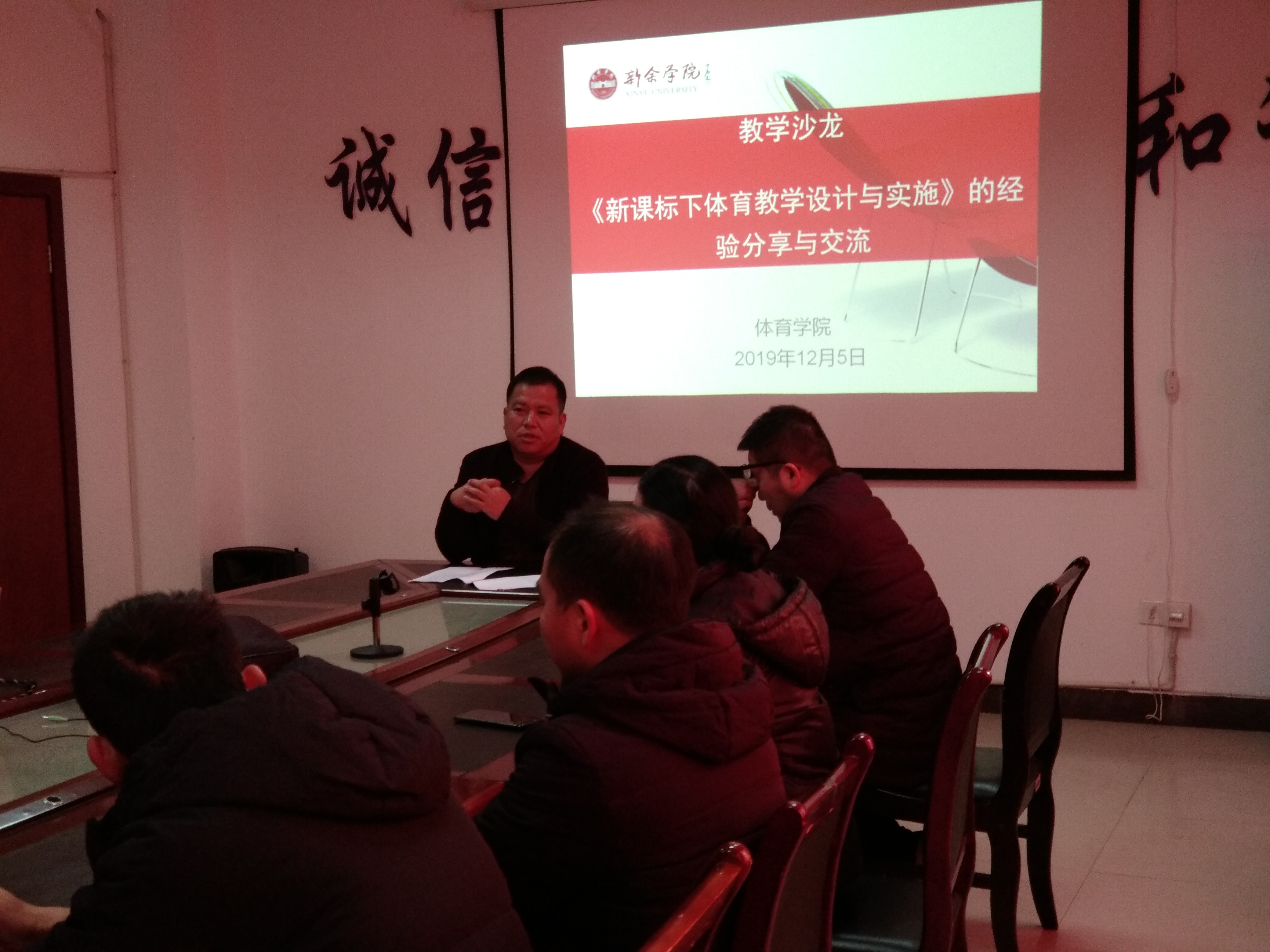 12月5日,公司邀请新余市体育学科骨干教师,学科带头人,新余市铁路小学曾志国老师开展题为《新课标下体育教学设计与实施的经验分享与交流》教学沙龙活动。PA视讯平台教育实习试讲指导老师和17级体育教育支教员工到场聆听。