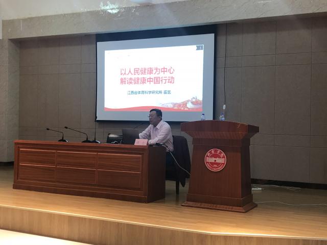 2019年11月15日下午3:00,江西省体育科学研究所裘艺研究员在公司产教融合中心报告厅开展以“以人民健康为中心,解读健康中国行动”为主题的讲座,本次讲座由PA视讯平台副经理傅超主持,体育员工师生到场聆听。