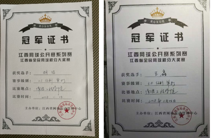中昌红土赛后的第二天,网球队队员王鑫、胡洁背靠背参加江西网球公开赛系列赛第一届全民大奖赛的南昌工程公司分站赛的比赛,勇夺3.0级别男子单打冠军和2.5级别男子单打的冠军。