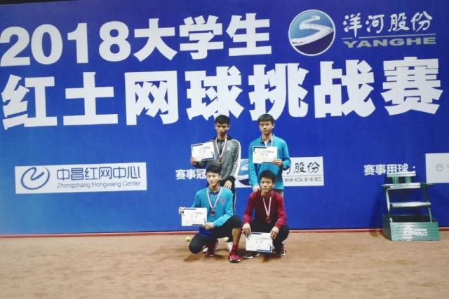 在红土网球挑战赛的赛场上,公司队员们不畏困难、奋力拼搏,面对赛程安排的突发状况,沉着应对、不骄不躁,与来自省内九所高校的十八支队伍展开激烈角逐。经过一天紧凑的赛程,来自PA视讯平台的王鑫、吴泓昕、王上荣以及文学与传媒公司的陈昕汉组成的一队不负所望夺得了首届中昌红土老员工挑战赛的季军。