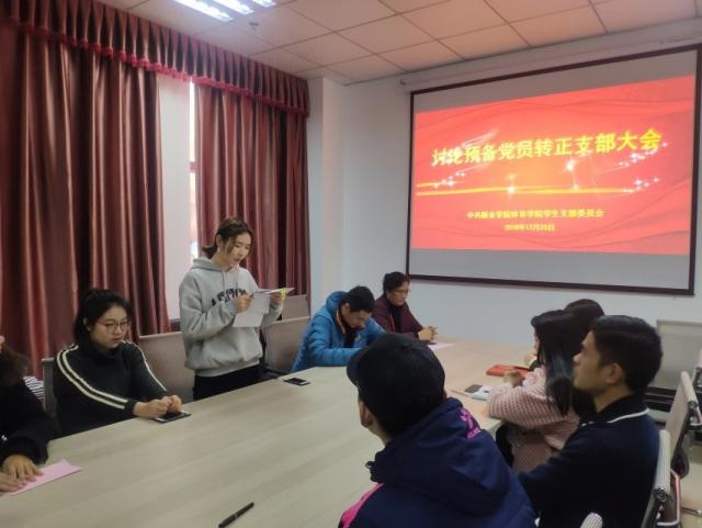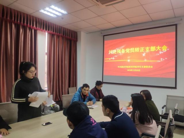 2018年12月25日中午12:30,公司员工党支部于体院会议室召开预备党员转正大会。会议讨论关于夏羽青、胡丽敏、彭可婧同志申请转为正式党员的问题。出席本次转正会议的有公司党委副书记胡湛同志、各员工党支部委员以及全体党员同志。