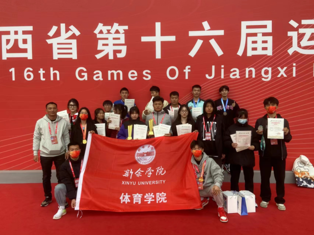 公司在江西省第十六届运动会健美操比赛获2金1银。其中,获本科乙组徒手六级第一名,本科乙组徒手自编操第一名,本科乙组2017校园踏板操第二名。
